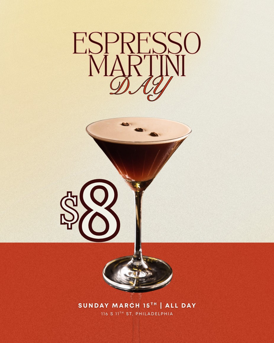 Enjoy $8 Espresso Martini's All Day for National Espresso Martini Day!