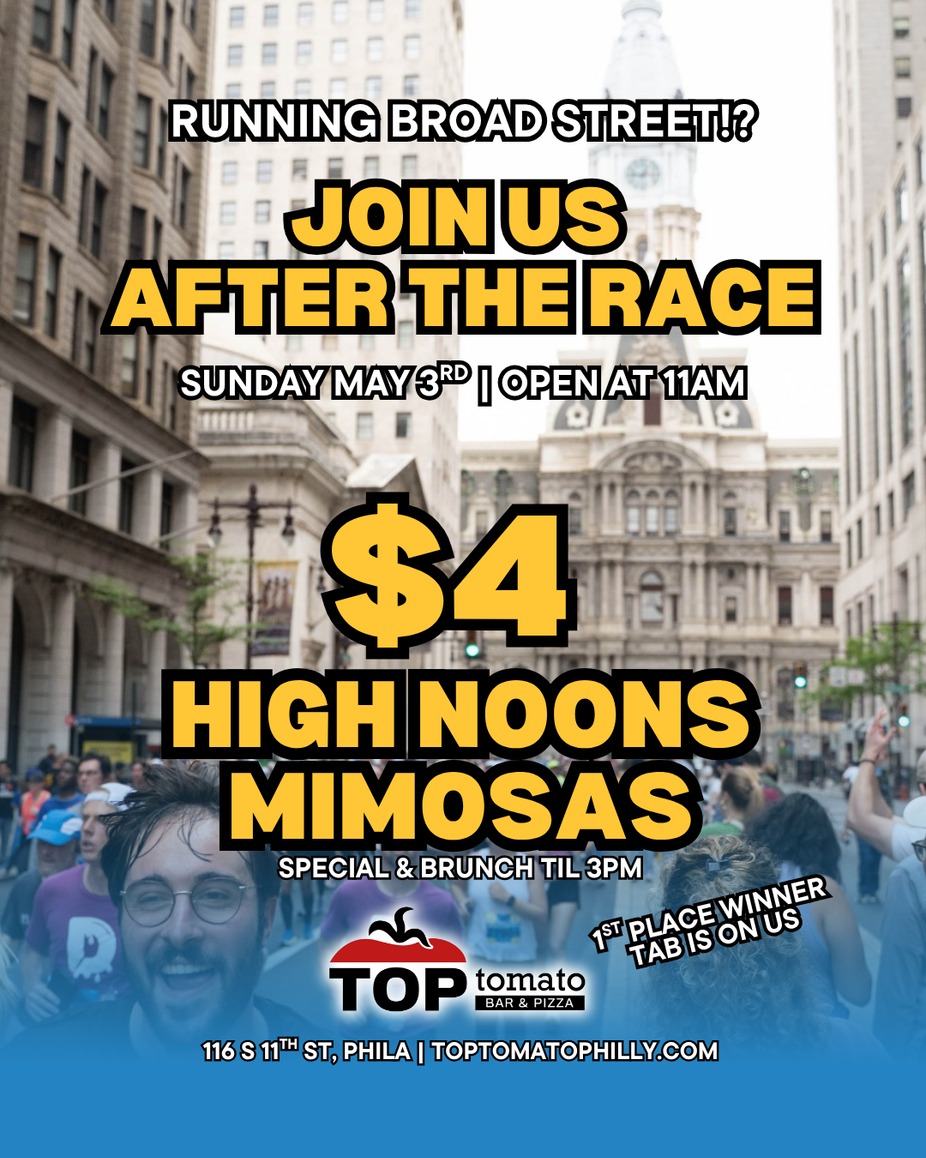 Join us after the Broad Street Run! We're open at 11am, Brunch til 3pm, Drinks Specials!